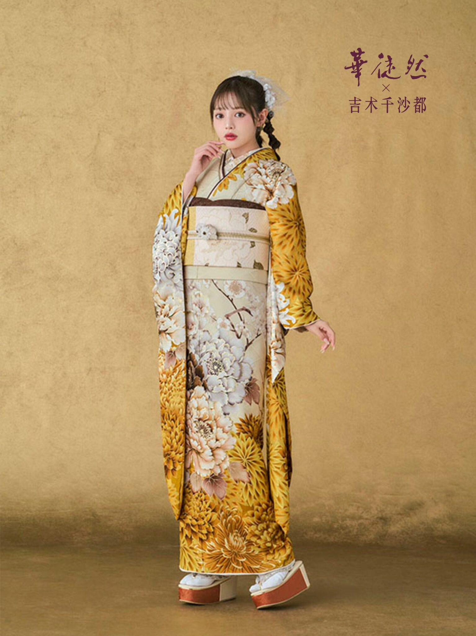 ヘアセットから写真アルバムまで前撮り記念撮影会ヘアセット+着付+写真撮影+2ポーズ台紙付き |