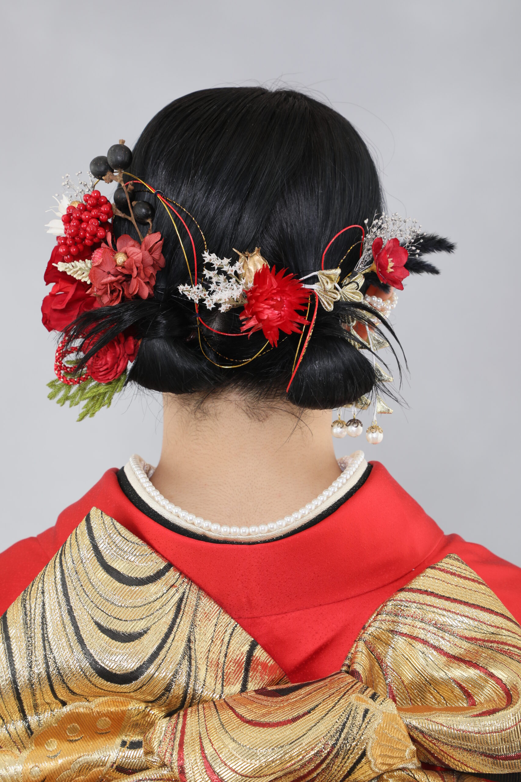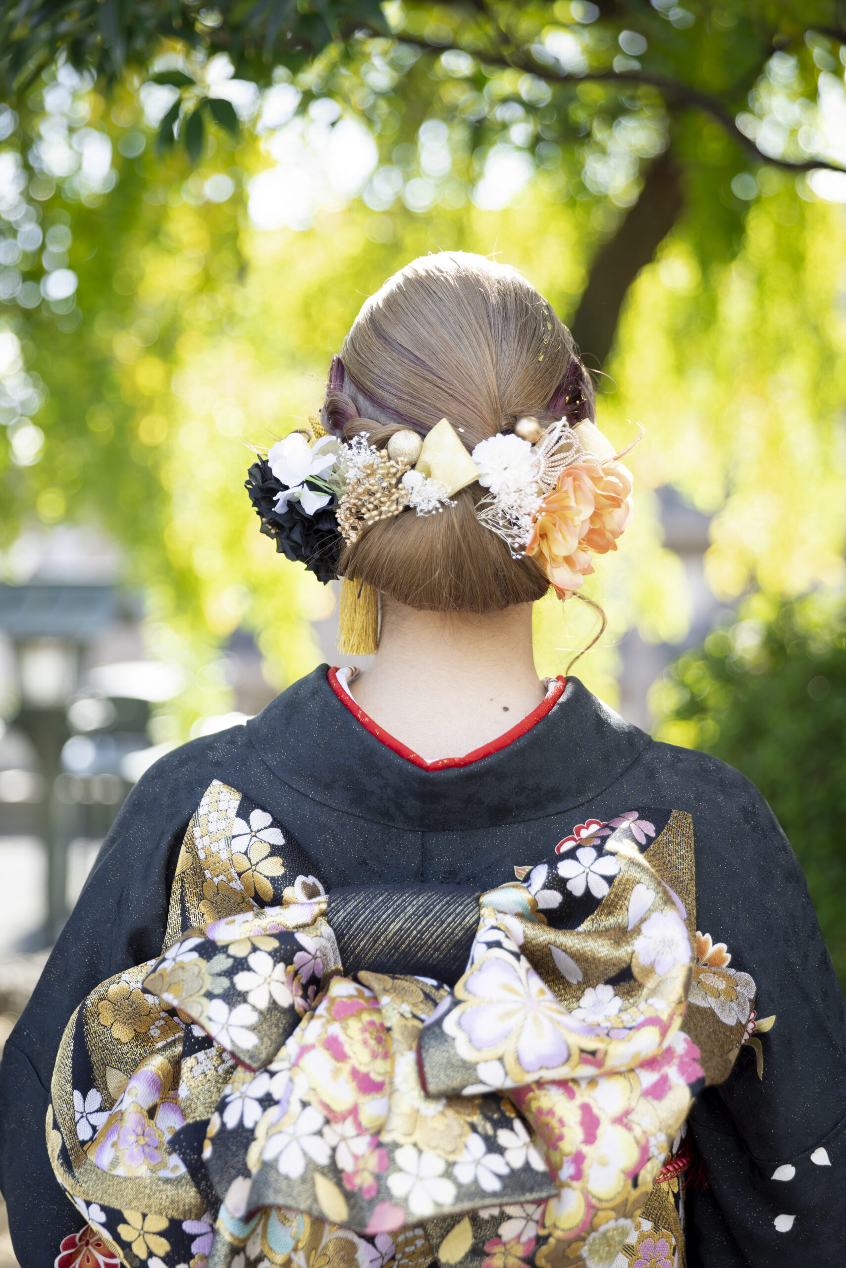 また、襟足のまとめ方も重要です。襟足がすっきりしていると振袖の衿元がきれいに見え、全体の印象が引き締まります。