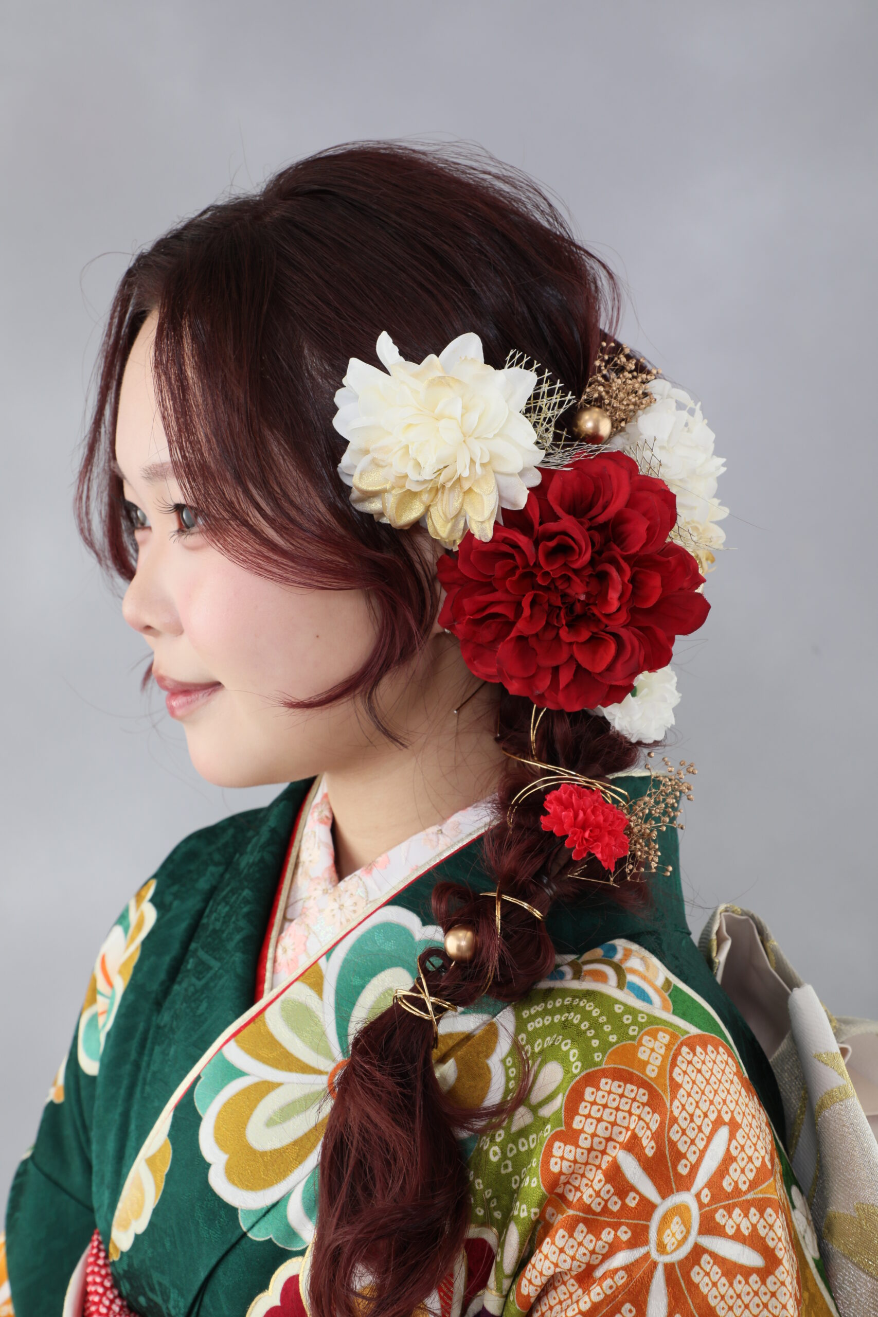 成人式前撮りのヘアメイクで最も重要なのは、振袖とのバランスです。前撮りヘアセットは単体で考えるのではなく、振袖の色や柄、雰囲気に合わせて選ぶことで全体の完成度が大きく変わります。