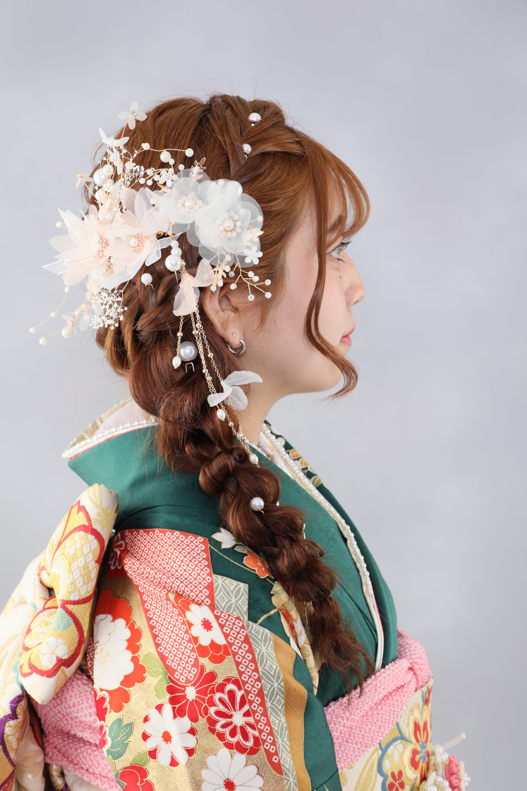 成人式前撮りでは、定番からトレンドまでさまざまなヘアセットが選ばれています。振袖の雰囲気やなりたいイメージに合わせて選ぶことが重要です。